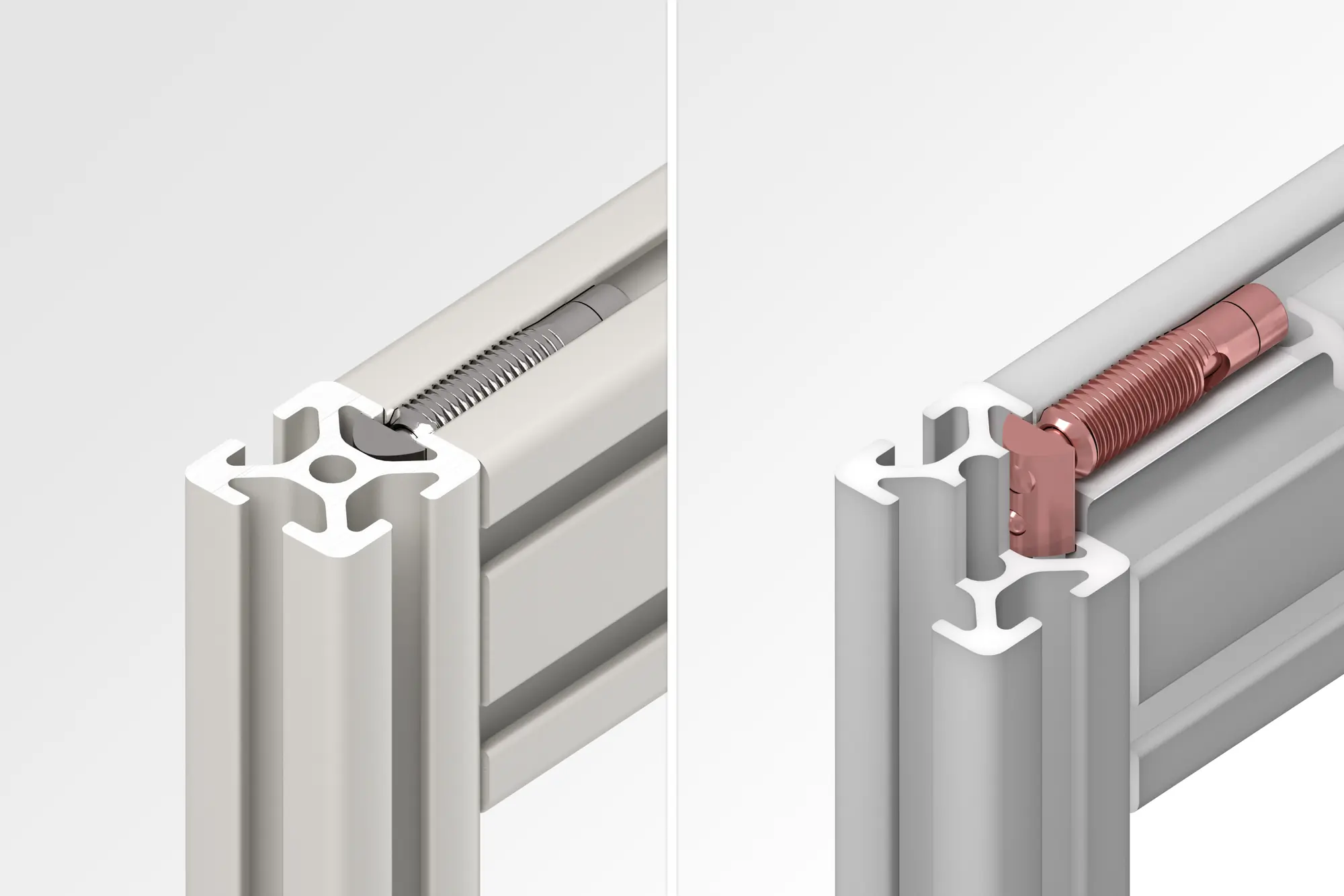 Automatic-Fastening Set 5 should be inserted so that the flattening on the thread is flush with the outer edge of the profile.