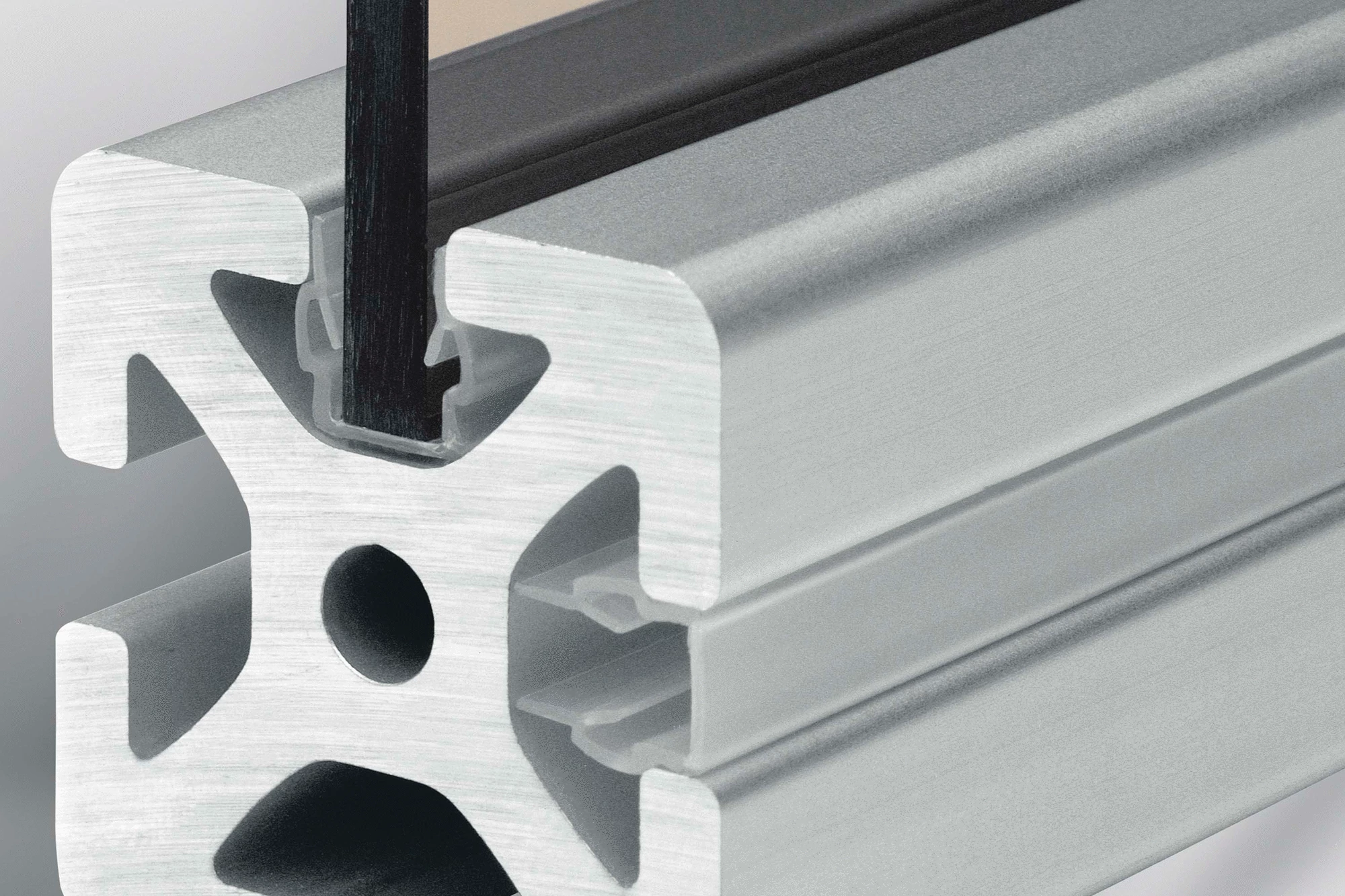 When inserted with its smooth side facing up, the Cover Profile keeps dirt and dust out of the groove.