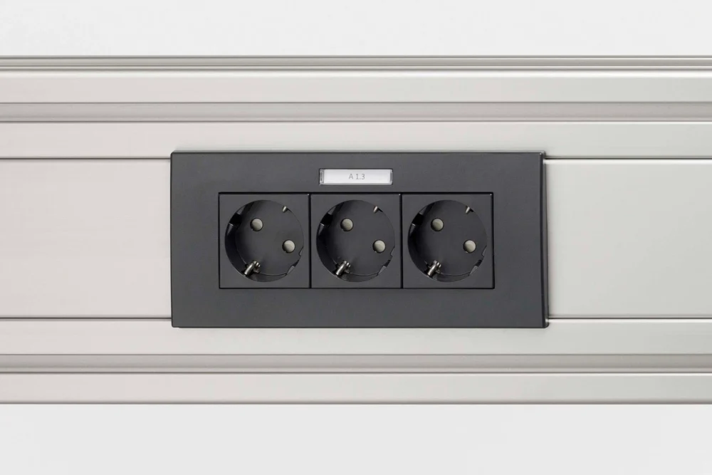 Keep things clear at the work bench! Face Plates M45 with Labelling Panel, Horizontal encompass one, two or three Mounting Boxes K76 and feature a horizontal labelling panel. This is important if Installation Profile 8 160x80 K76 is being used on work benches as a robust, horizontal aluminium cable conduit. It ensures that the labels can be easily read. The Face Plates are available in white and black grey. Note: item supplies vertical Face Plates M45 with Labelling Panel for Installation Profiles that have been installed vertically.
