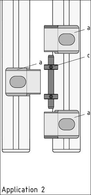 The required hinge can be assembled easily from the following sets: a = Hinge Leaf 8 40x40 b = Hinge Pin D8x51