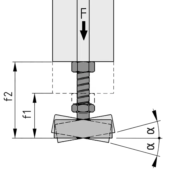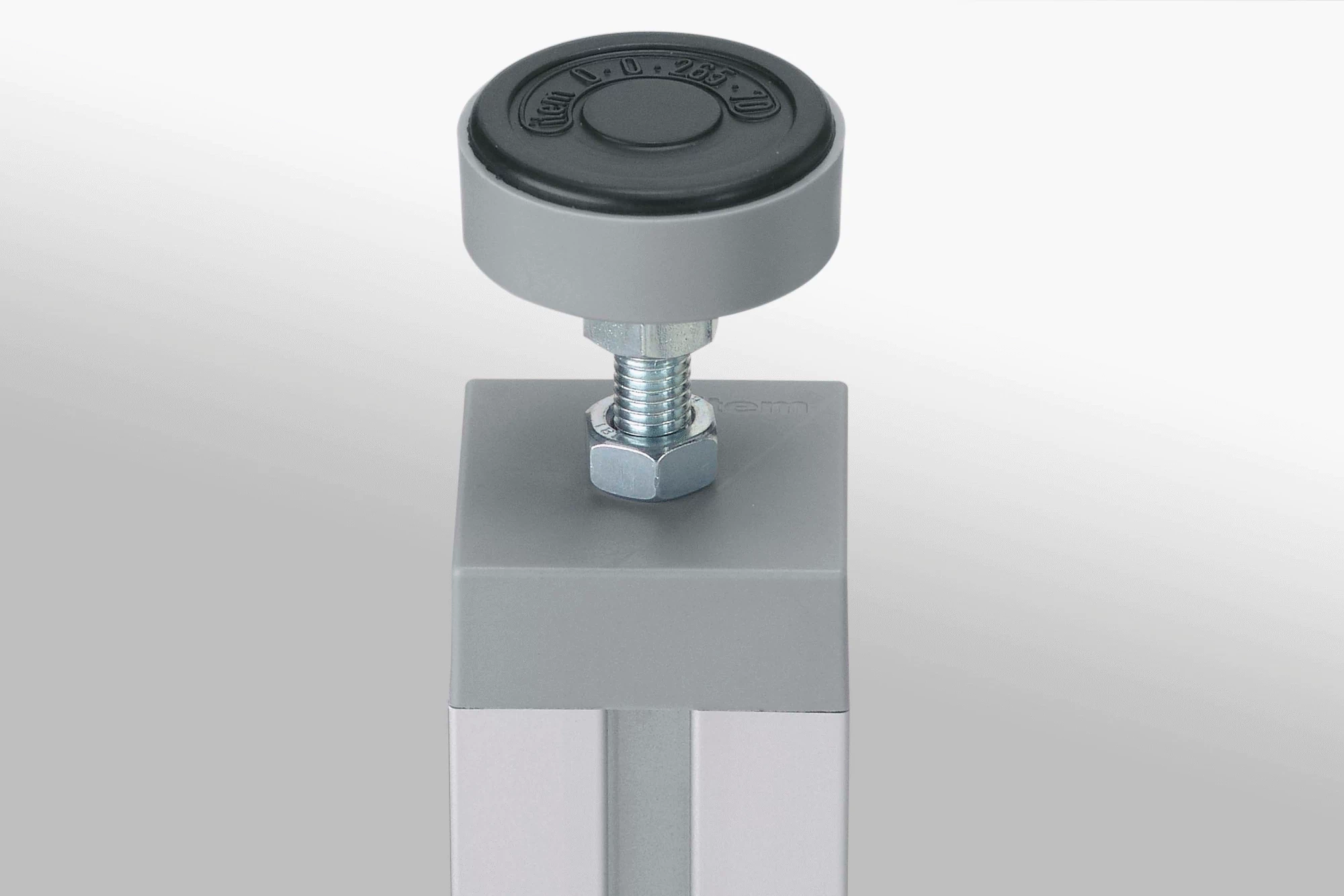 Spindle 13 A/F, St, bright zinc-plated Foot plate, PA, grey Hexagon Nut DIN 934-M8, 13 A/F, St, bright zinc-plated a max. = 70 mm a min. = 25 mm (without nut)