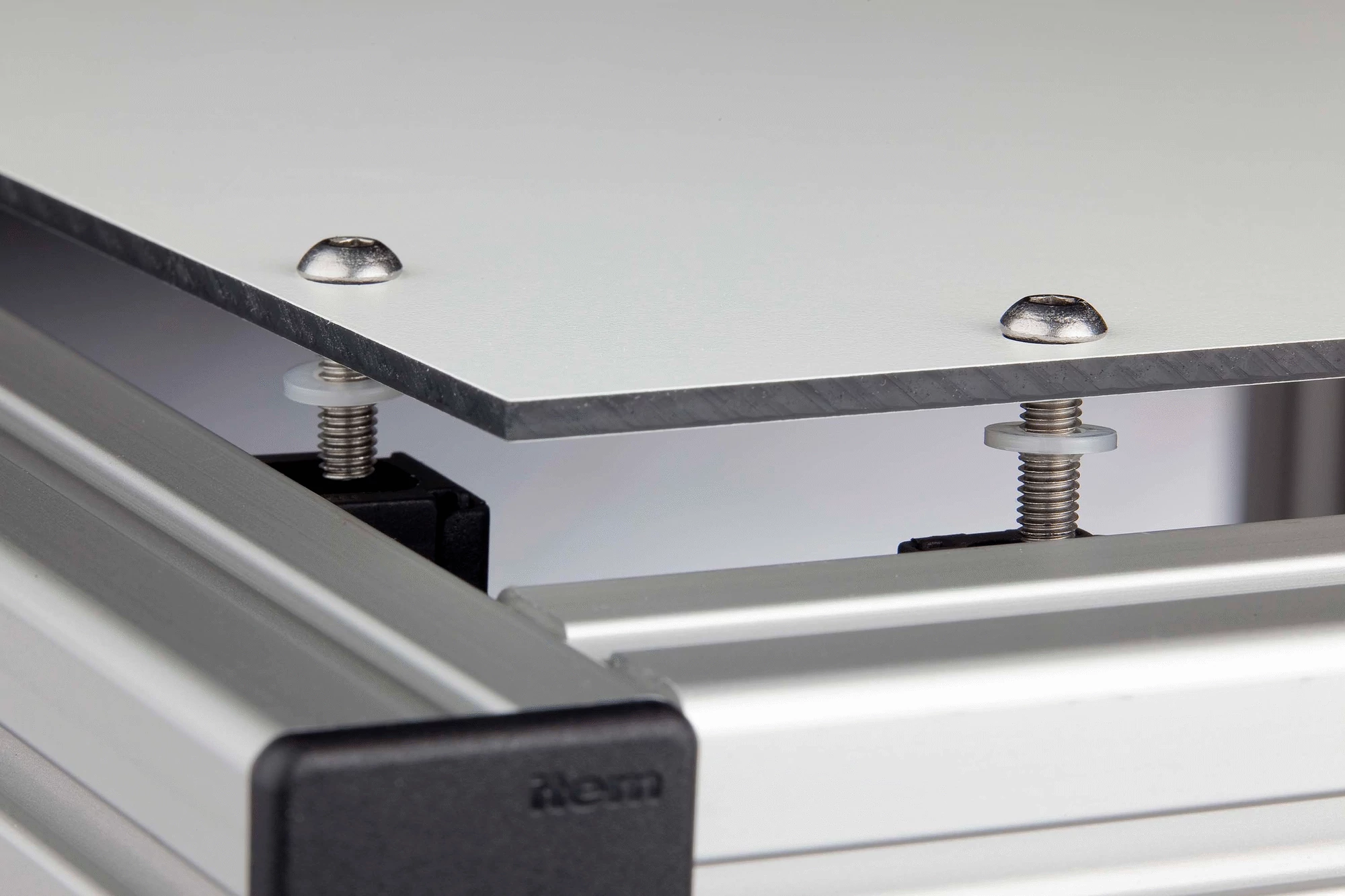 Create captive screws for a whole range of fasteners such as Multiblocks and Angle Brackets using the universal Anti-Loss Washers (M4, M5 and M6). Simply place these onto a screw that has been inserted into its through hole and, when the screw connection is dismantled, the screw will be held safely and securely in the through hole of the panel element.