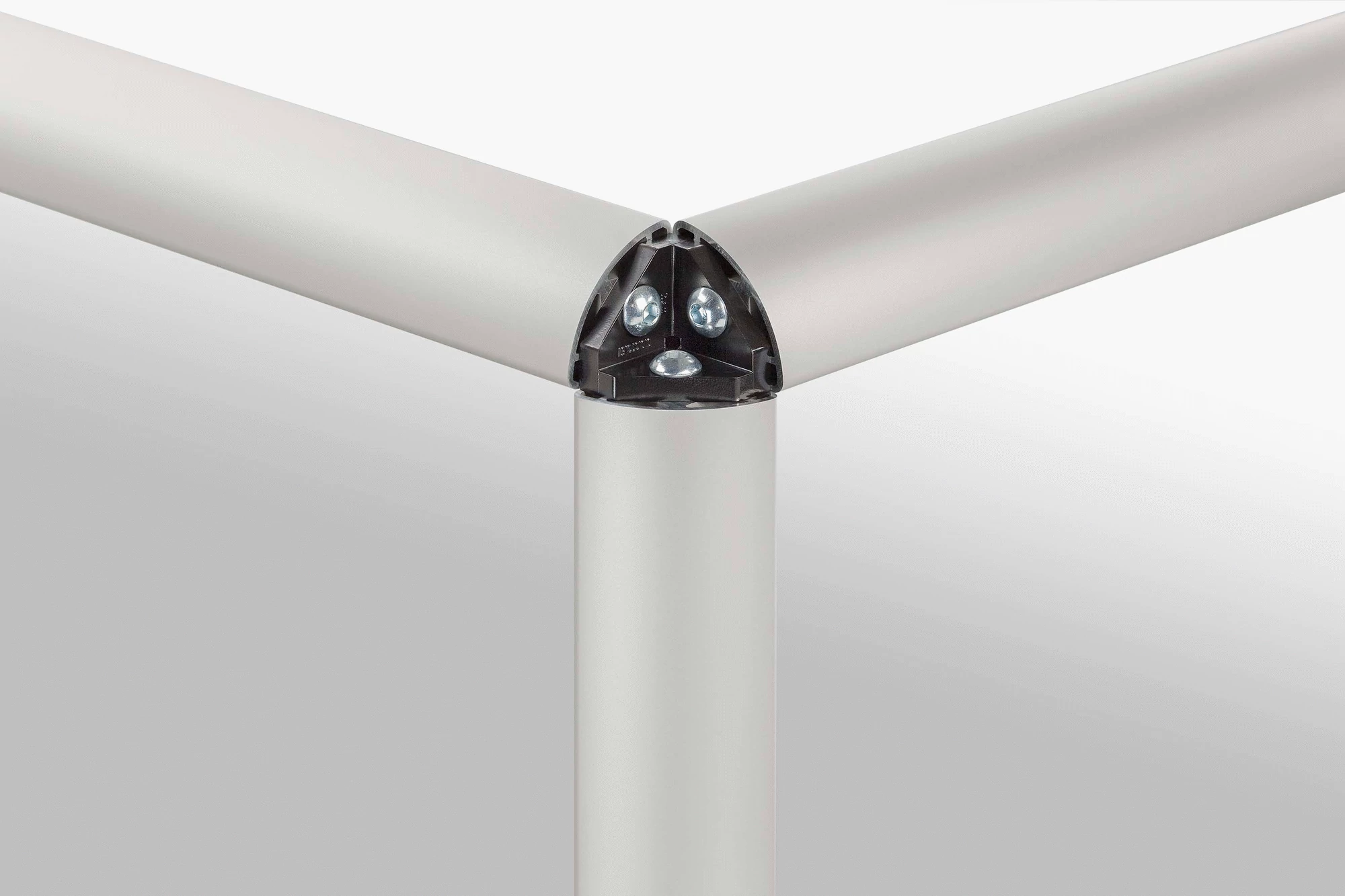 Fastening Sets can be used to construct a corner unit with three profiles or one corner angle with two profiles, ensuring a continuous profile geometry. Fastening Sets are ideal for constructing attractive display cases, tables, cover hoods etc. The profiles must be provided with threads in the core bores.