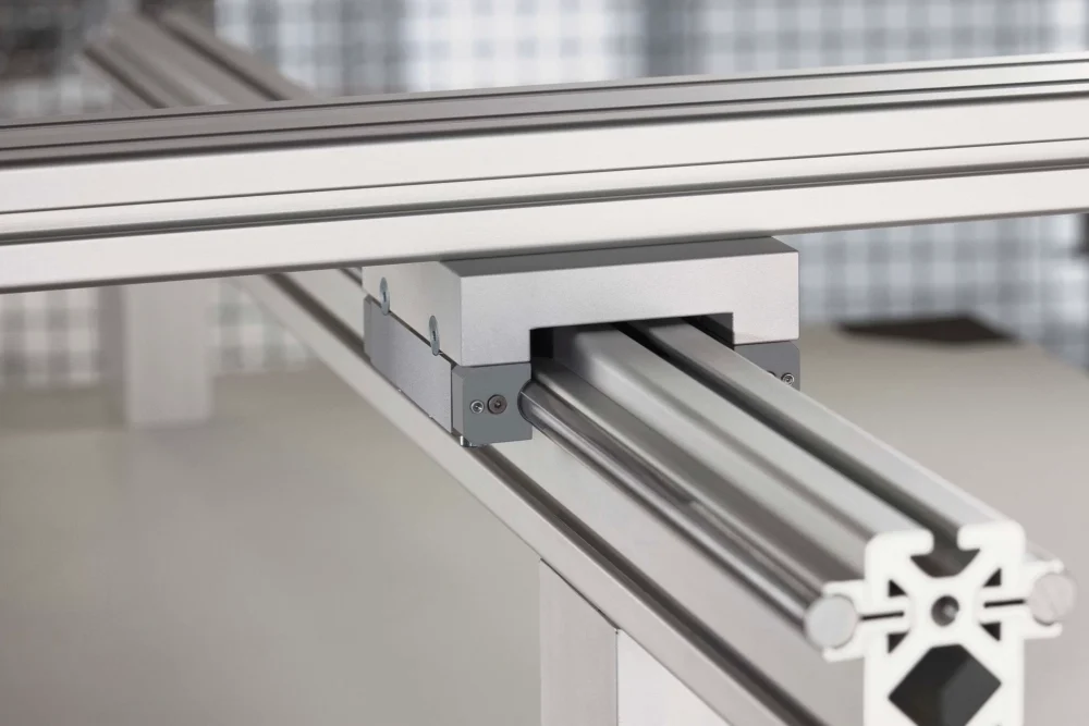 Universal connection bores in the carriage plate: M8 threaded holes for fastening profiles or any other structures.