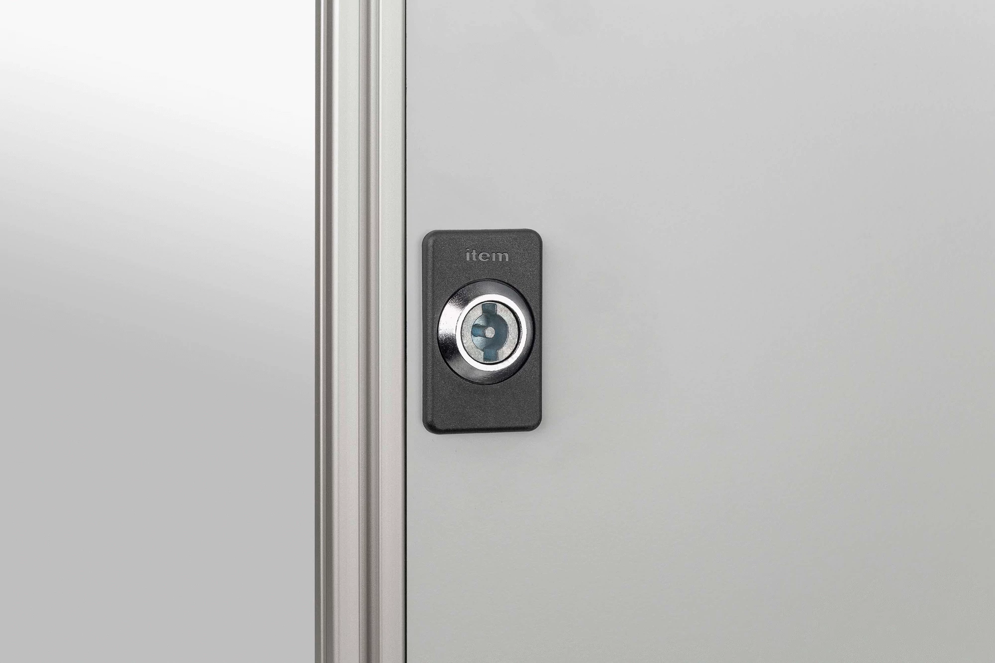 The proven locking systems for Lines 5, 6 and 8 are now available in a new form. In the variant with escutcheon, the panel element has an anti-torsion feature for the locking system and the locking system itself is covered over to provide an attractive finish. In the variant with integrated grip, the escutcheon also serves as an ergonomic grip. There is no need for an additional grip/handle on the door. Locking Systems with escutcheons/grips are fitted directly into the frameless panel element (thickness 1-8 mm) and lock the door in the profile groove that holds the nab. Use of an additional Door Rabbet or stop is recommended. All variants of Locking Systems with escutcheons/grips are available for both left-hand and right-hand application (the right-hand option swings the locking bar in clockwise direction into a groove on the right of the door; the situation is reversed for the left-hand option). In addition to Cylinder Locks with keys identical, variants are also available with Double-Beard Locks.