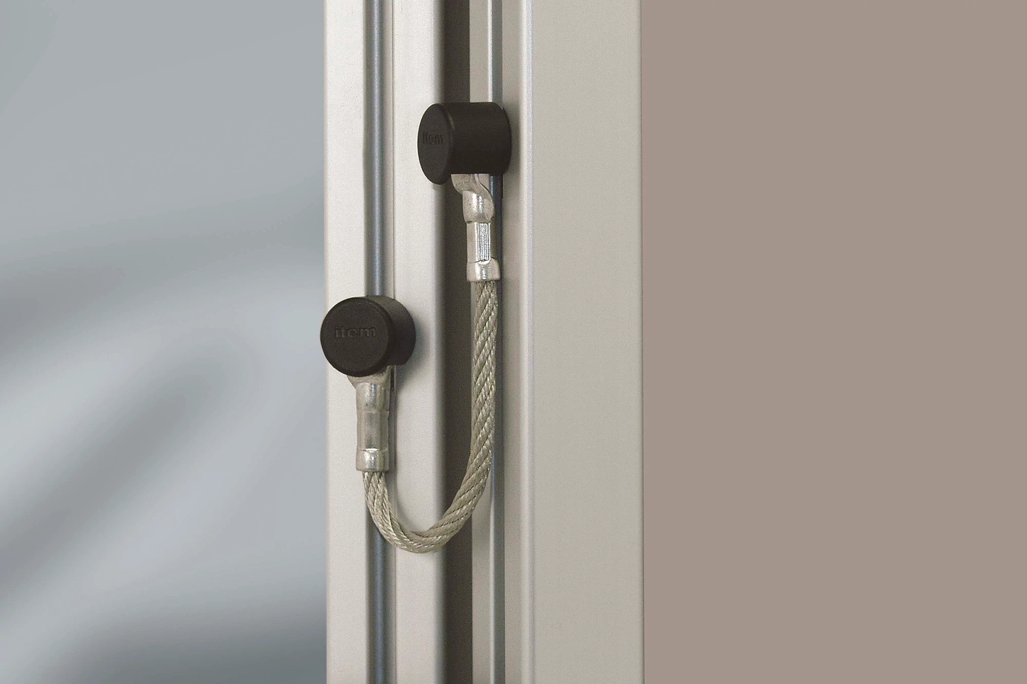 Ready-made electrical connection for system elements that need to be grounded to a construction frame. All elements of a machine have to be connected to the protective conductor if there is a danger that they will become electrically live in the event of a fault. Detachable or movable components must not be connected via their fastening elements (fastening screws, hinges). A flexible conductor with a large conductive cross-sectional area (16 mm 2 ) ensures that the electrical connection remains intact irrespective of the mechanical fastening or possible movement. Earthing Connection 8 can also be used to interconnect neighbouring shelves or table constructions in order to equalise potential. Earthing Connection 8 can also be used to connect work benches to the grounding earth equipment. The set includes selected fastening elements which provide a secure contact with the groove of Profile 8, highly flexible stranded wires and protective caps.