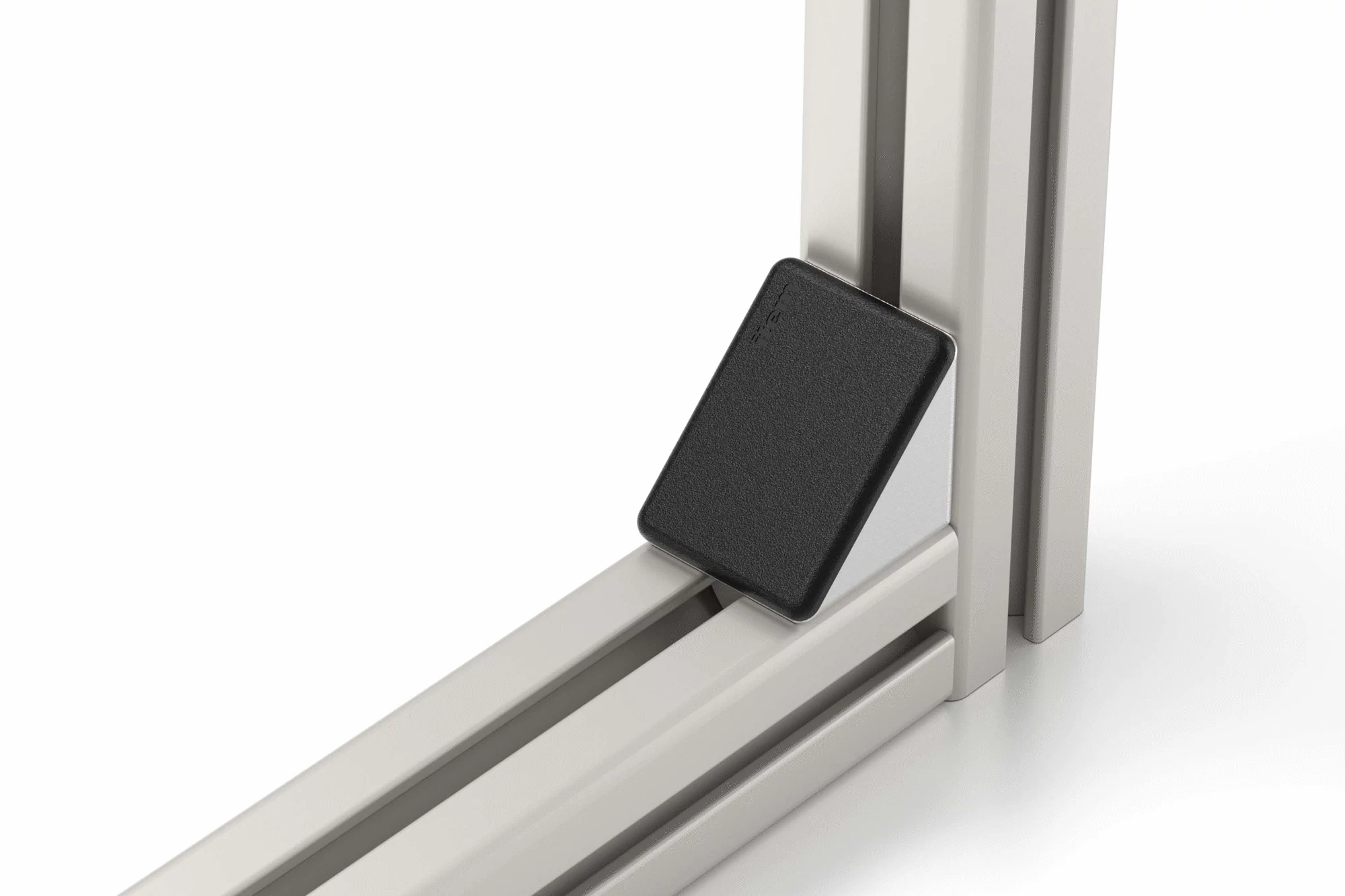 Angle Bracket 6 30×30 Zn, die-cast zinc, RAL9006 Angle Bracket Cap 6 30×30, PA, black 2 Button-Head Screws ISO 7380-M6x14, St, bright zinc-pl. 2 Washers 10.5×10.5×1.3, St, bright zinc-plated 2 T-Slot Nuts 6 St M6, bright zinc-plated