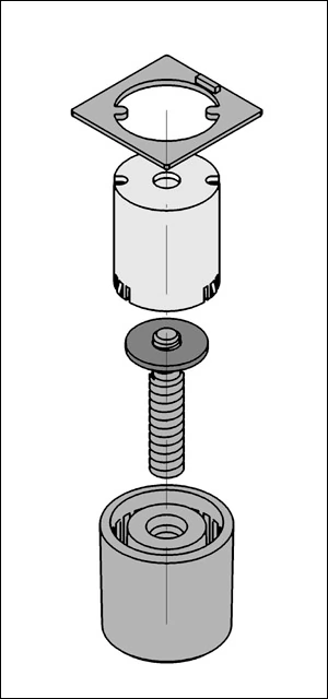Housing, inner part and end plate, PA-GF, grey Spindle and washer, St, bright zinc-plated