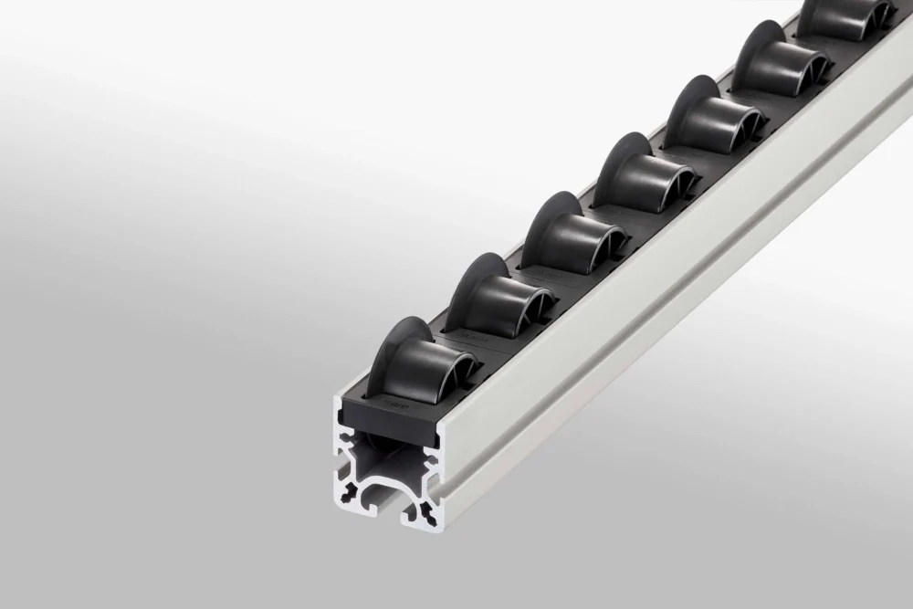Please take into account the modular dimension of the roller elements and inserts being used when cutting the Castor Rail to size. A gap at the start or end of the Roller Conveyor can be filled with Castor Rail 8 40x40 Slide Strip ESD (0.0.622.26).