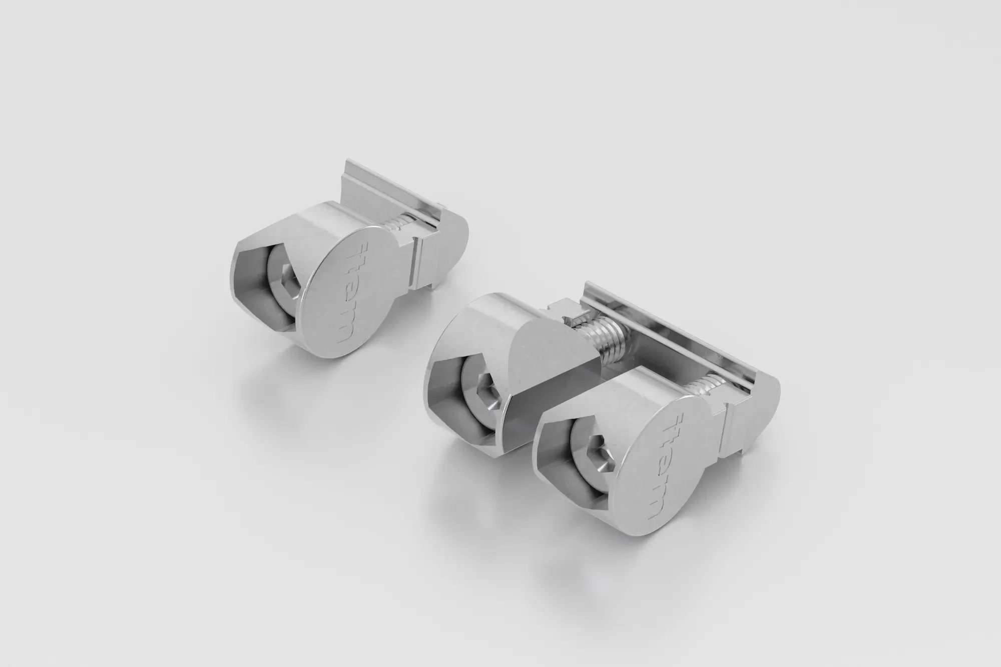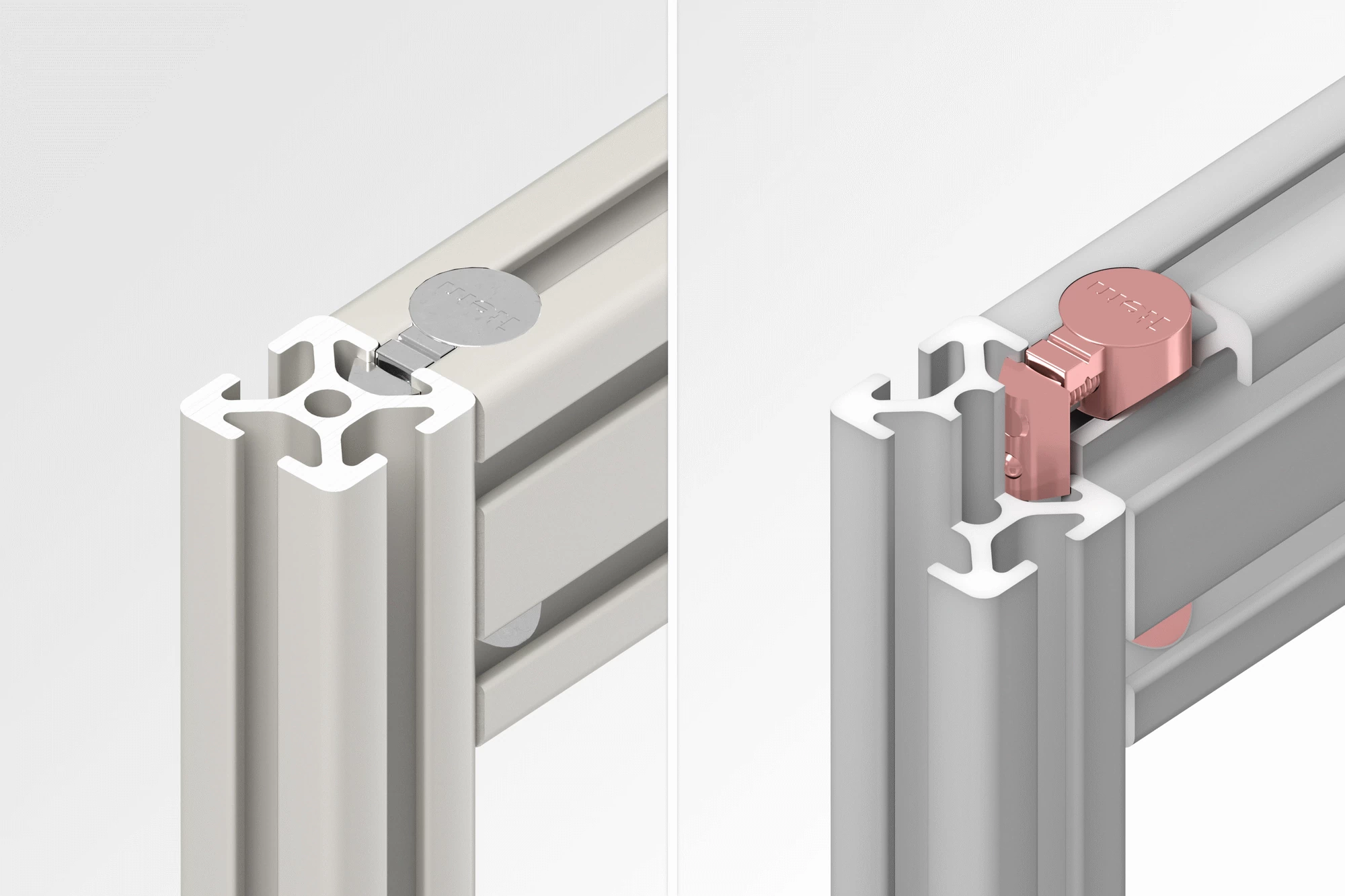 Universal Fasteners should generally be used in pairs. To speed up the installation process, sets that comprise two Universal Fasteners and one T-Slot Nut with two threads are also available for various profile variants.
