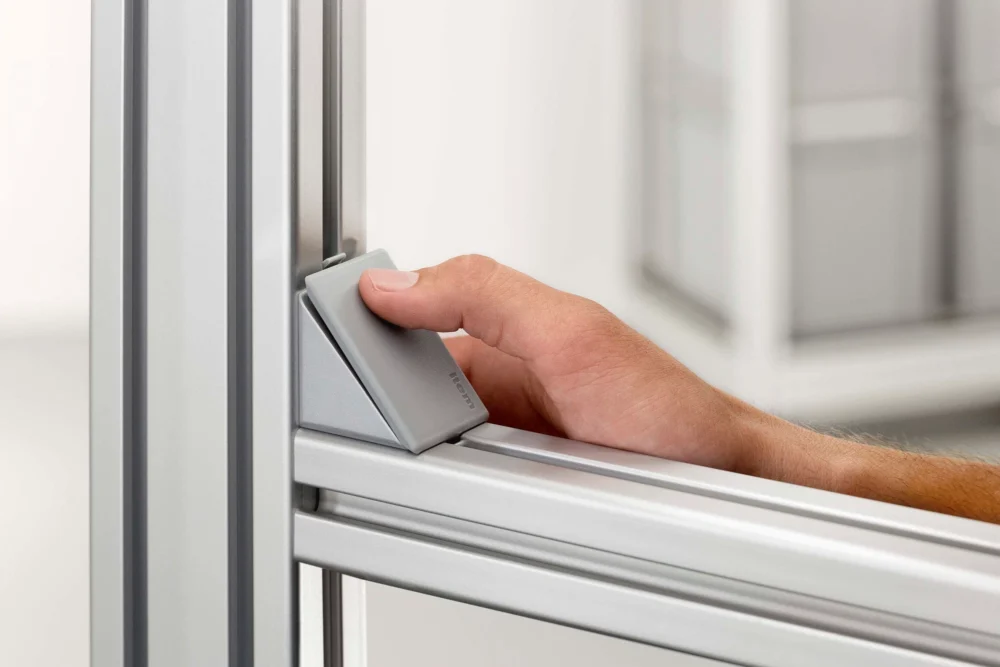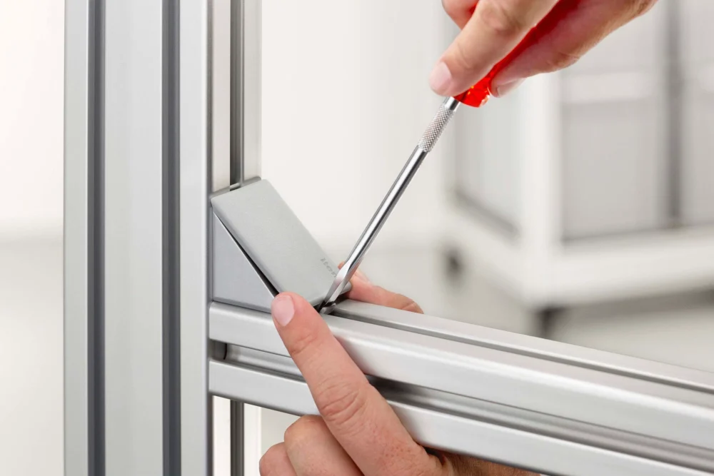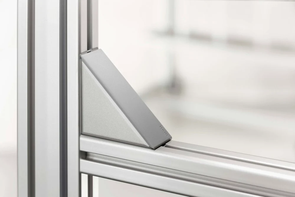 The item Automatic Angle Bracket Set is the fastest profile fastener. Because everything is preassembled and all users have to do is tighten the screws, structures can be put together in next to no time. Automatic Angle Bracket Cap 8 is just as easy to fit – and to remove again, if required. This ingenious accessory for keeping out dust and dirt can be pushed into place by hand and removed with ease using a screwdriver. Whether for a few days or for years, Automatic Angle Bracket Cap 8 keeps things clean and tidy. They can also be used with Angle Bracket Set 8 40x40 PA (0.0.647.03) and Angle Bracket Set 8 80x80 PA (0.0.647.03).
