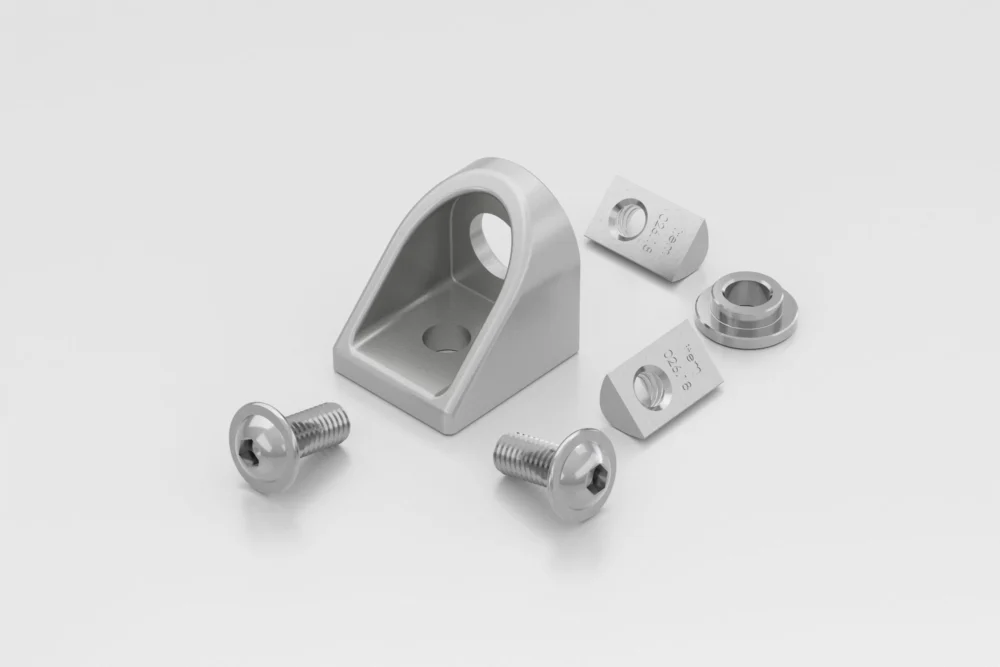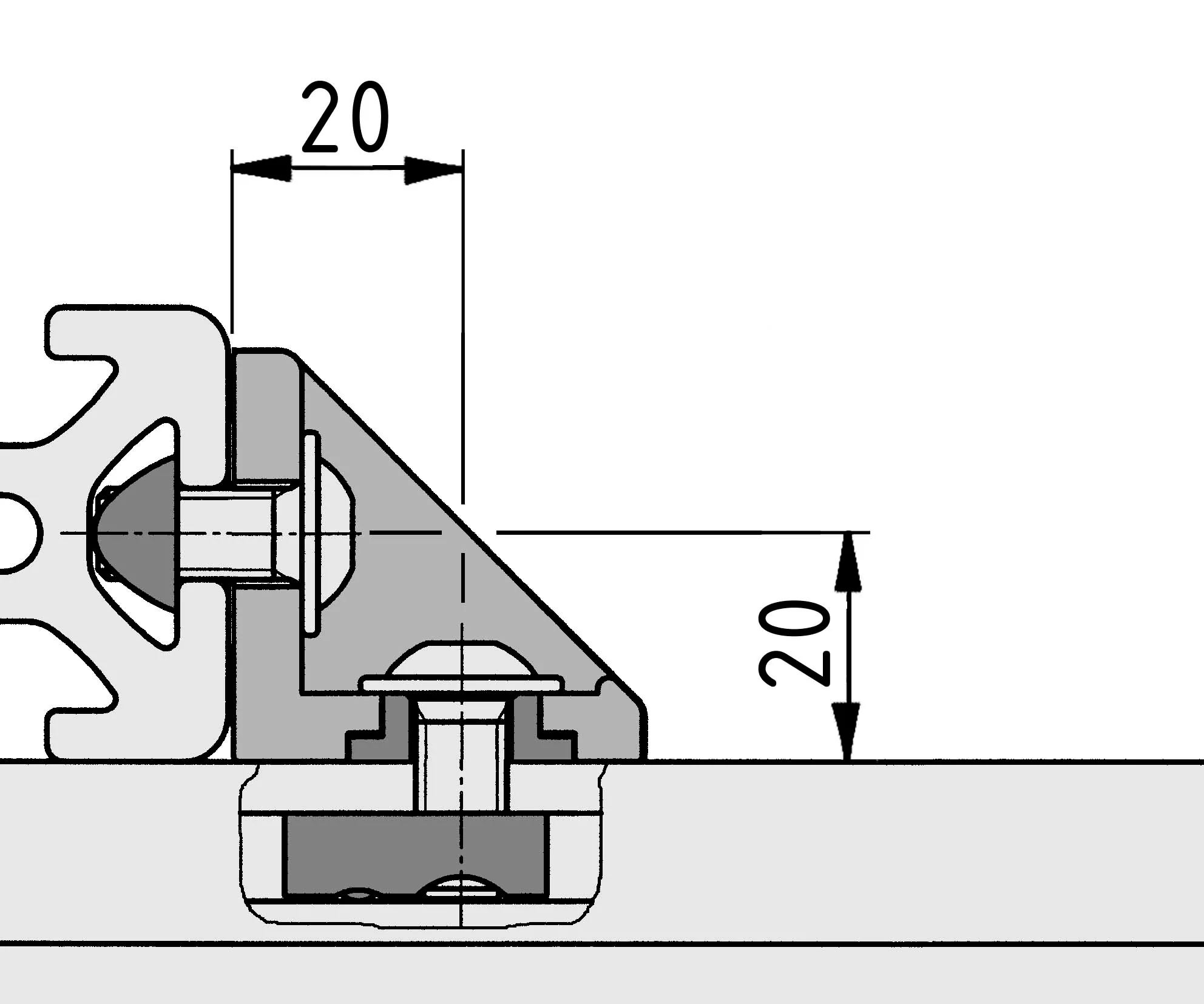Die-cast Al, RAL9006 white aluminium bearing bush, St, bright zinc-plated 2 T-Slot Nuts 8 St M8, bright zinc-plated 2 dome-head screws M8x18, St, bright zinc-plated a = 20 mm