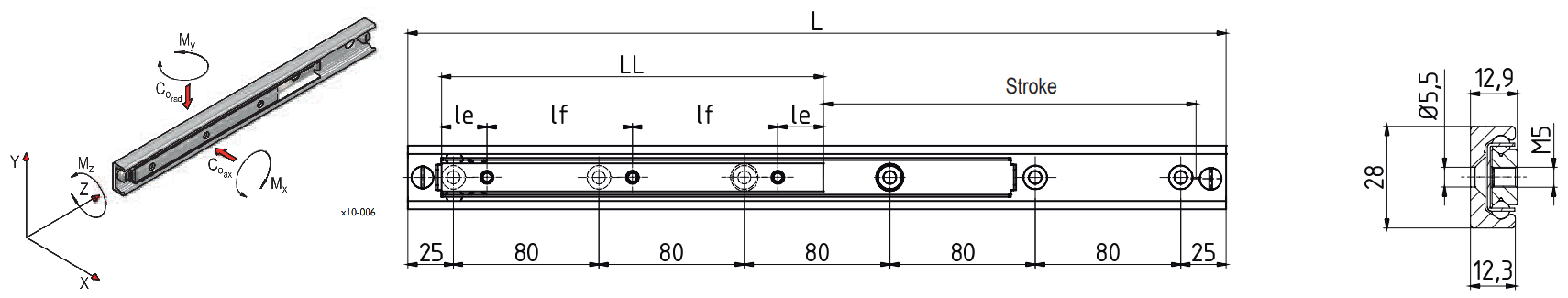 | Betegnelse | Hjerneslag | Skinneveiledning | Glidebryter for vogn | Vekt | Løfting av last | Tillatte lastmomenter | |||||||