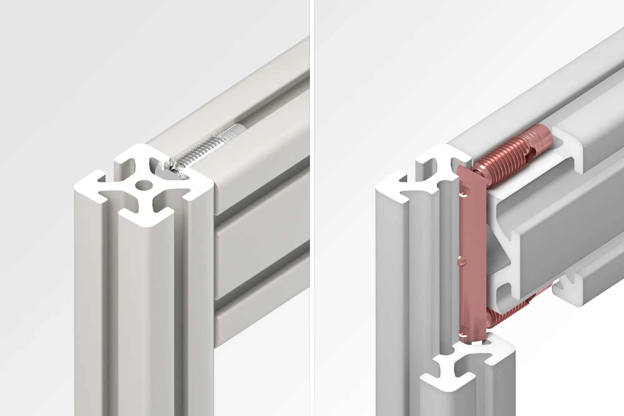 2 Automatic Fasteners 8, St, bright zinc-plated 2 Hexagon Socket Head Cap Screws DIN 912-M6x40, St, bright zinc-plated T-Slot Nut 8 St 2xM6-76, bright zinc-plated