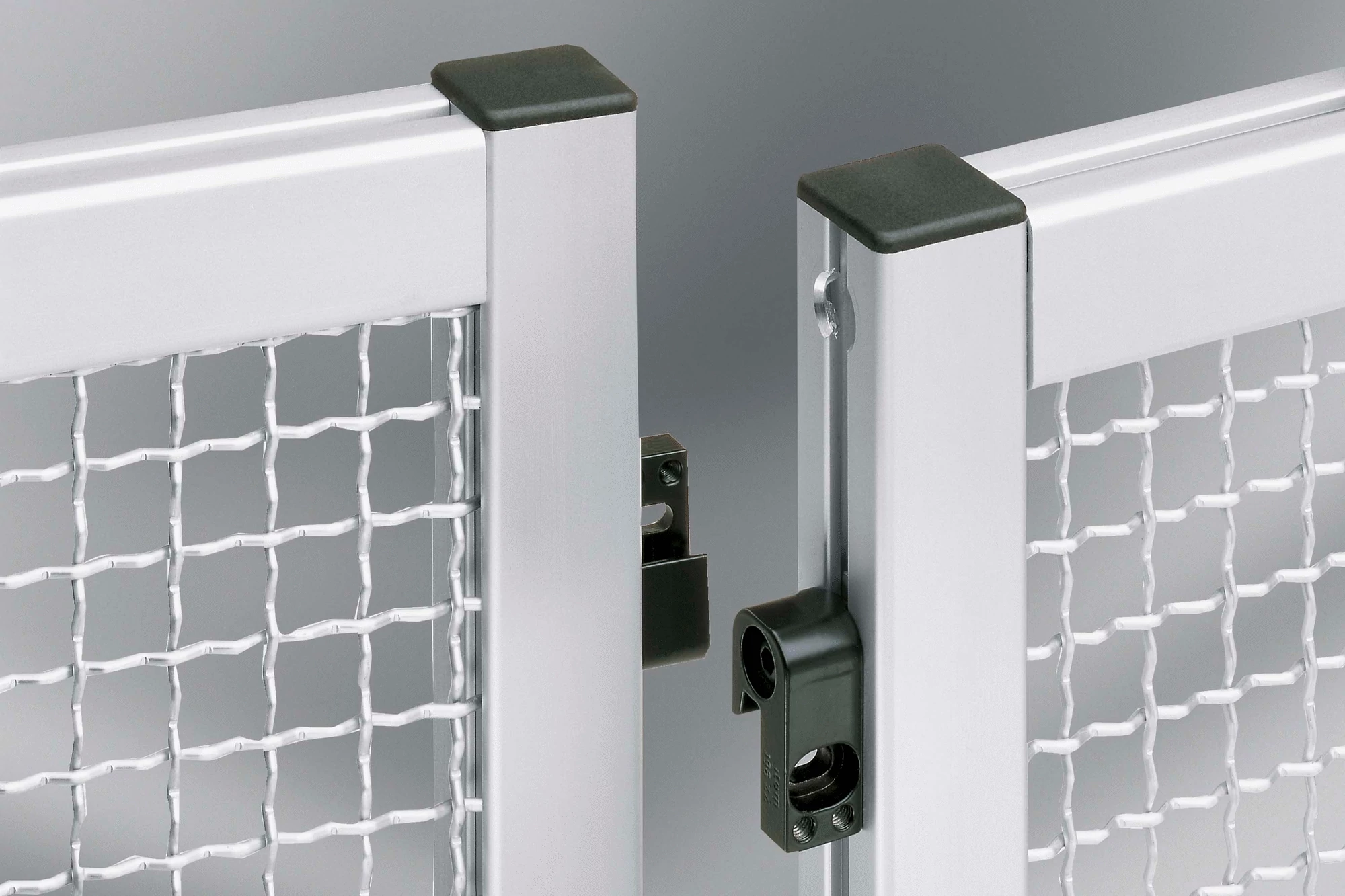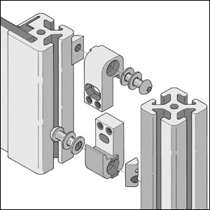 2 Door Rabbets, die-cast zinc, black 2 Button-Head Screws ISO 7380-M8x25, St, bright zinc-plated 4 spring washers, St, bright zinc-plated 2 T-Slot Nuts 8 St M8, bright zinc-plated