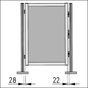 Example application for door construction: Clearance on left 28 mm with Hinges 8 40 Zn (Section 3.4 Movable Fastening Elements) and on right 22 mm with Door Rabbets 8, in combination with Door Lock 8 (Section 4.3 Locks and Catches).