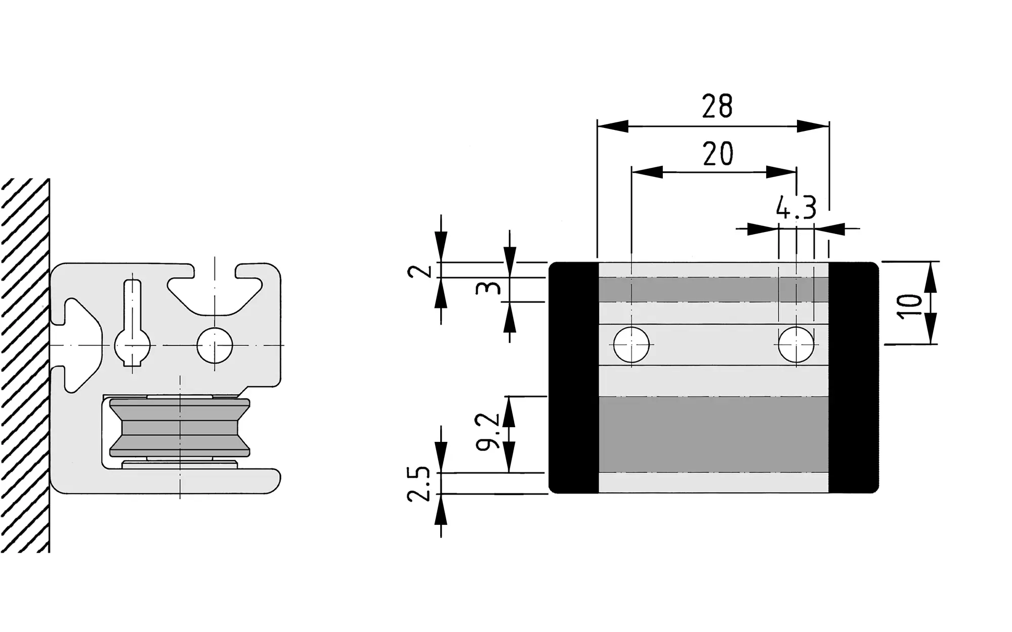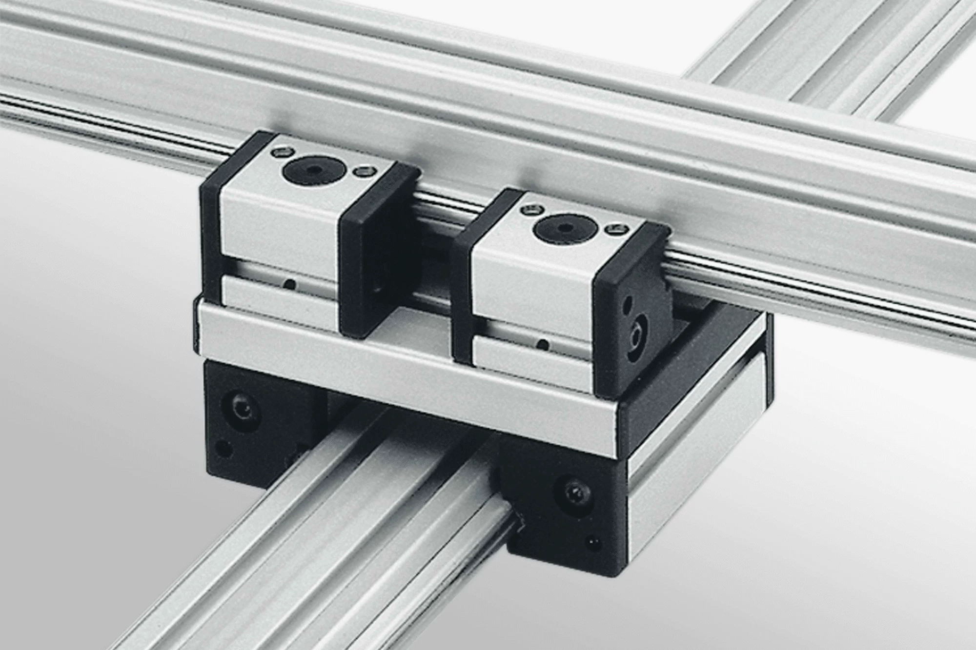 Bearing Units are used in conjunction with a carriage plate for constructing the sliding carriages. Bearing Units e (eccentric) and c (centric) differ in the geometry of the bolts. The eccentric bolts can be adjusted subsequently so as to ensure that the guide unit is free from play. Bearing Units should therefore always be used in pairs in both centric and eccentric versions. The Bearing Units must always be equipped with End Cap and Lubricating Systems in order to prevent premature wear.