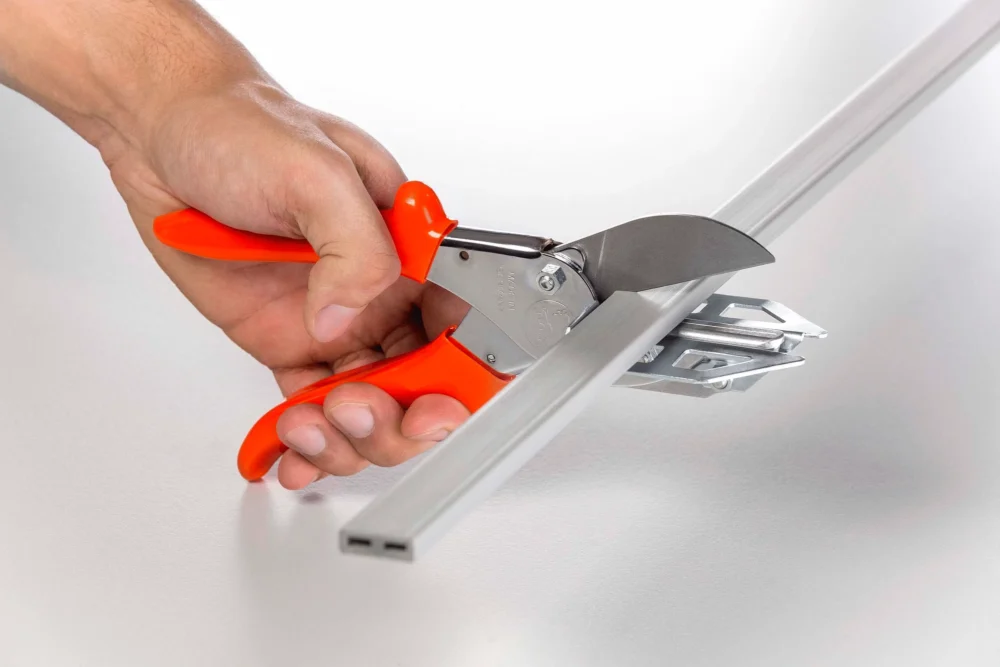 Never again cut slanting edges – Multi-Purpose Pliers with 90° Stop can cut through rubber, plastic and even thin aluminium profiles. The integrated stop makes it easier to cut products to length at a right angle. As a result, there is usually no need to mark a cutting line. To keep edges perfect, the lateral support and anvil stop soft materials bending. The blade is longer than on conventional multi-purpose pliers. Together with the long, sheathed grip, this ensures that a great deal of force can be applied to cut through strong materials.