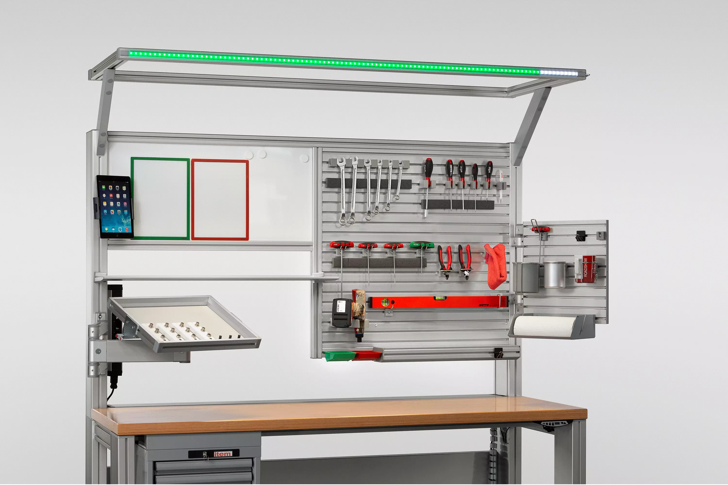 The LED strip can be shortened in sections of 17 mm and is installed in a Line 8 groove using LED Casing Profile 8 (0.0.718.15) and LED Casing Profile 8 14x5, Cap (0.0.719.68).