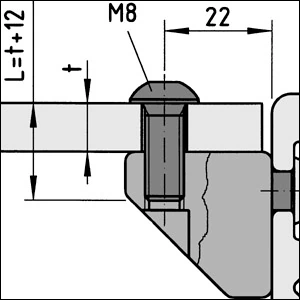 Basic unit and locating lug, die-cast zinc, black Square nut DIN 557-M6, St, bright zinc-plated Leaf spring, St, stainless