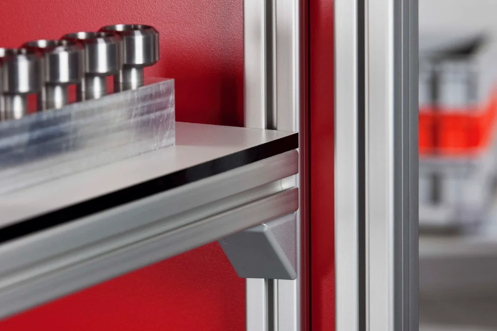 Line 10 continues to grow. The addition of Profile 10 50x20 E enhances the line with a universal profile that is compatible with all types of fastening solution, offers a flat cross-section and can be easily incorporated into constructions. The Profile 10 groove leaves all options open when it comes to fastening techniques and provides the perfect hold for all fastening elements. Caps ensure added safety at the profile end.