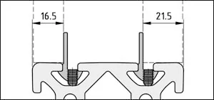 Connection dimensions for the Rebate Profile 8 Al 16 to Profiles 8. The distances between the Rebate Profiles and the edge of the profile make them ideal for installing 16 and 21 mm thick panel elements in profile constructions.