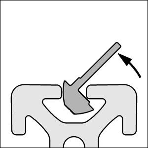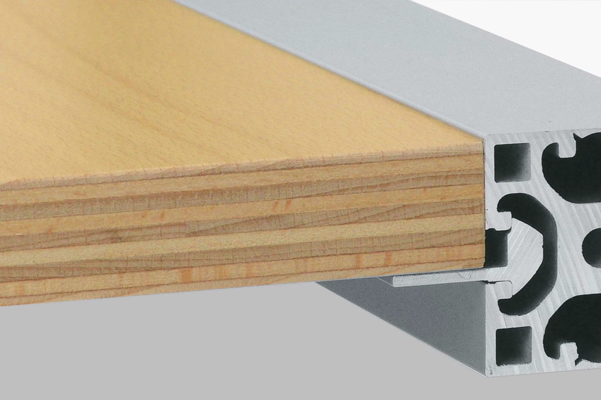 The Rebate Profile is inserted into the groove and fixed in position with grub screws M5.