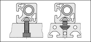 Grooves of Profiles 8 can be used to secure the Bearing Blocks using fastening elements of Line 8.