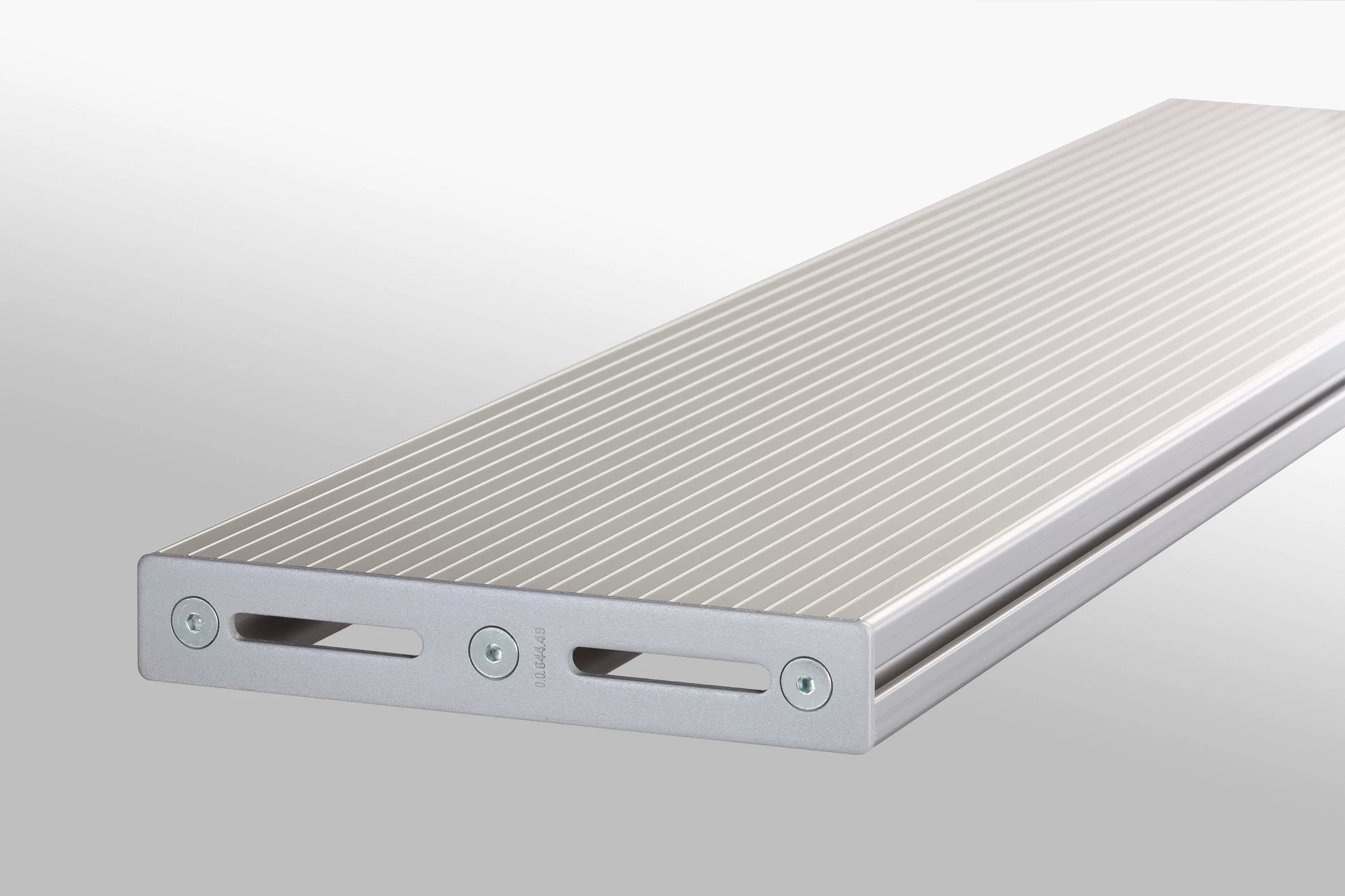 2 step profile flat brackets 240, St, powder-coated RAL 9006 white aluminium 4 T-Slot Nuts 8 St M8, St, bright zinc-plated 6 Countersunk Screws DIN 7991-M8x20, St, bright zinc-plated 4 washers ISO 7089 – 8 – 200 HV, bright zinc-plated 4 hexagon screws ISO 4017-M8x18, St, bright zinc-plated