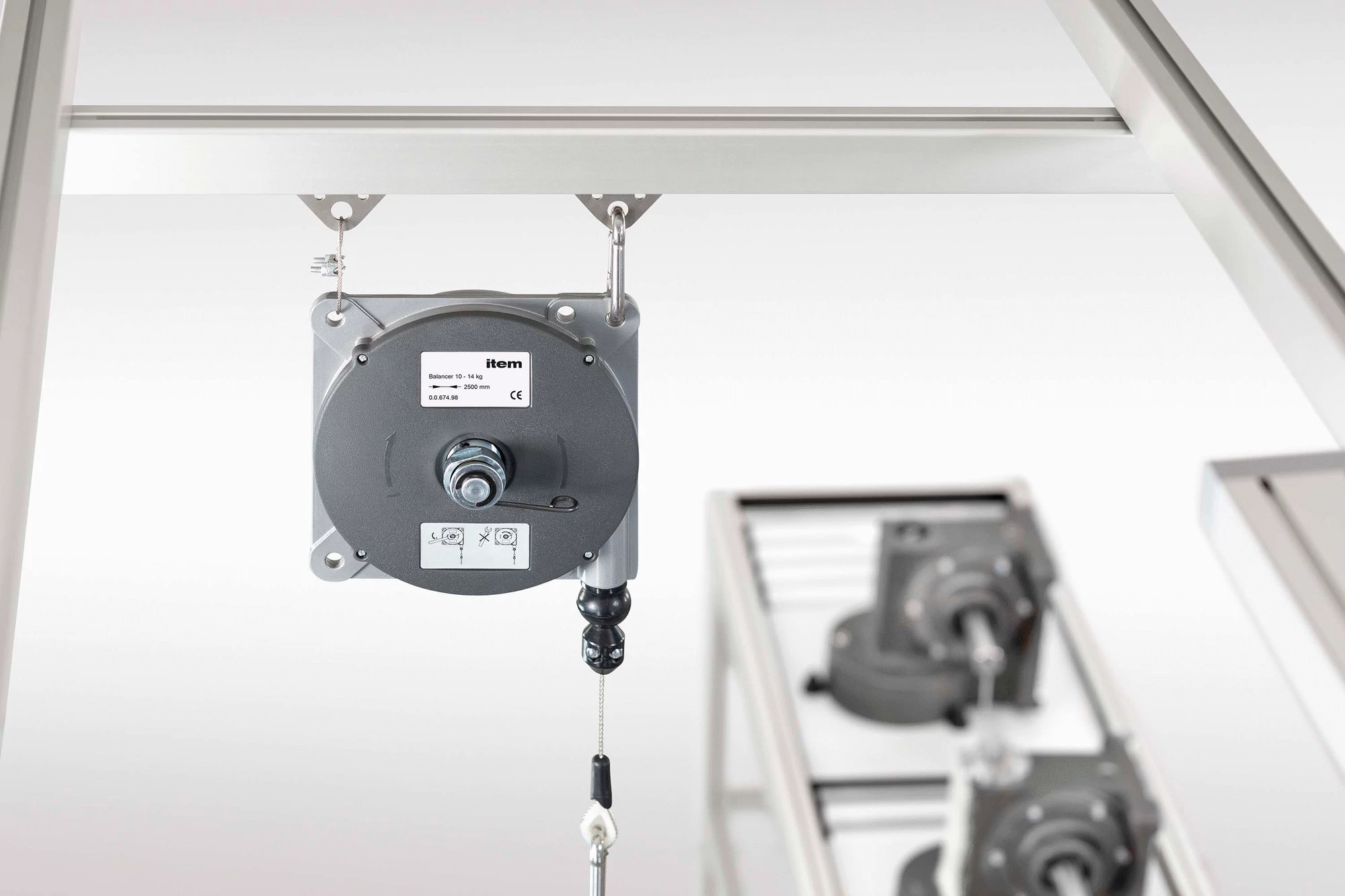 1 Casing, die-cast Al 1 Steel cable ⌀ 2.5 mm, St, stainless 1 Arrester mechanism: Steel cable ⌀ 2 mm, St, stainless 1 Steel cable clamp, St, bright zinc-plated 1 Spring hook, St 1 Hook wrench, St Notes on Use and Installation