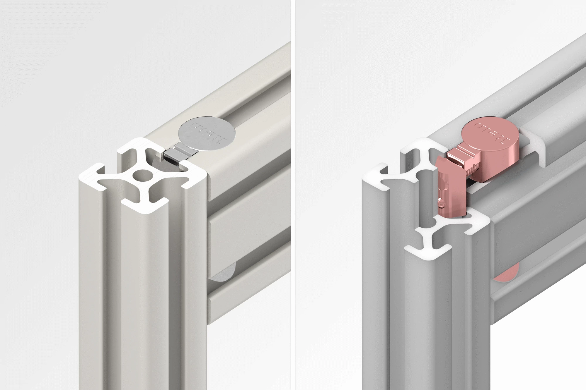 Universal Fasteners should generally be used in pairs. To speed up the installation process, sets that comprise two Universal Fasteners and one T-Slot Nut with two threads are also available for various profile variants.