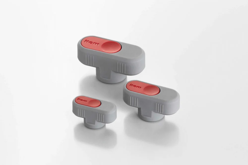Griff, PA-GF, grau mit Schraube, St, verzinkt Abdeckkappe, PA-GF, rot Abdeckkappe, PA-GF, dunkelgrau