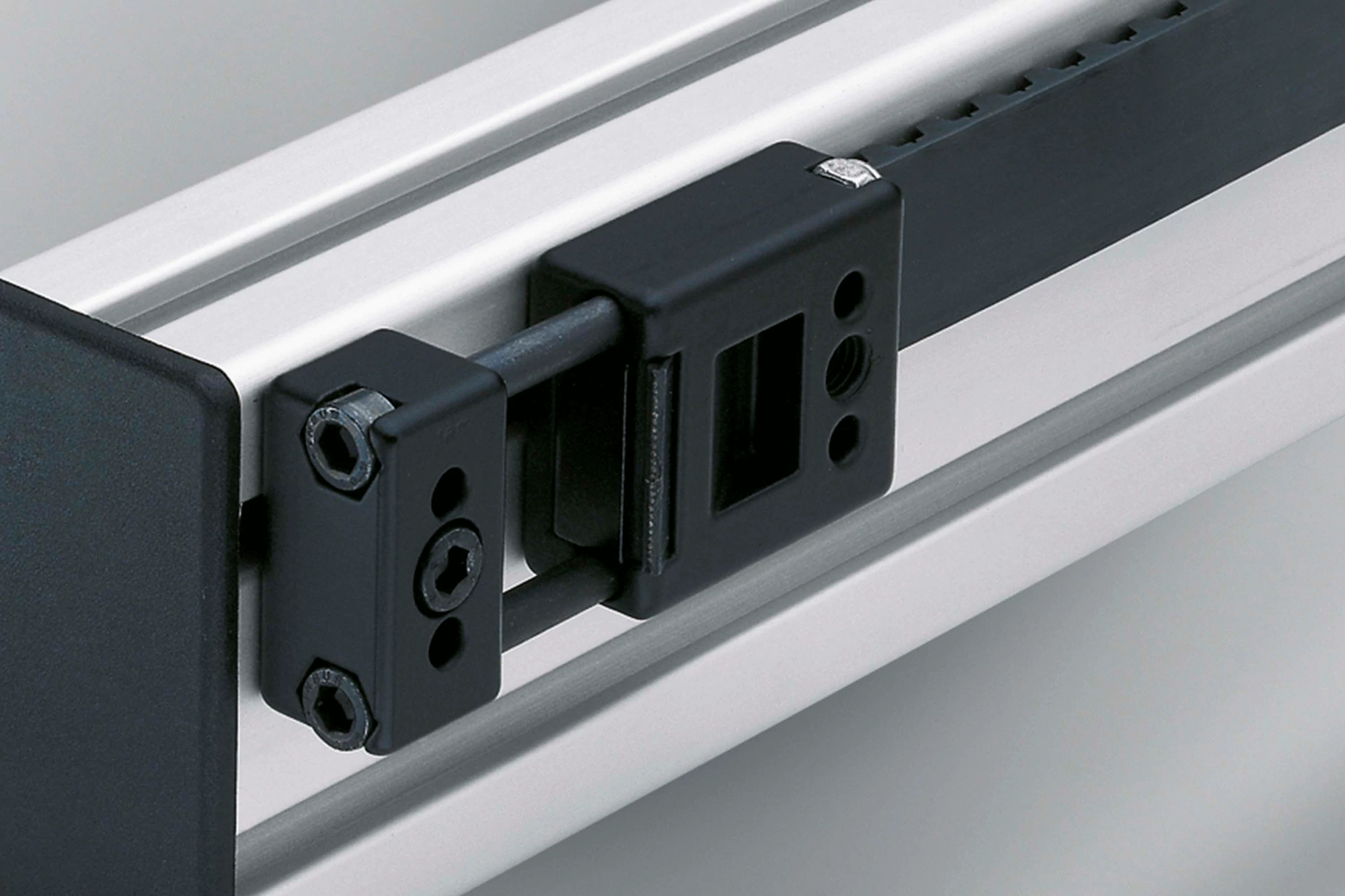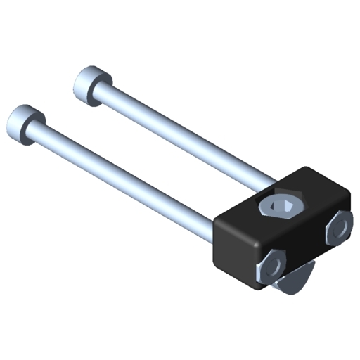 Fixing Block, die-cast aluminium, black Cap Screw DIN 912-M4x10, St, bright zinc-plated T-Slot Nut 5 St M4, bright zinc-plated 2 hexagon nuts DIN 985-M3, self-locking, St, bright zinc-plated 2 Cap Screws DIN 912-M3x50, St, bright zinc-plated